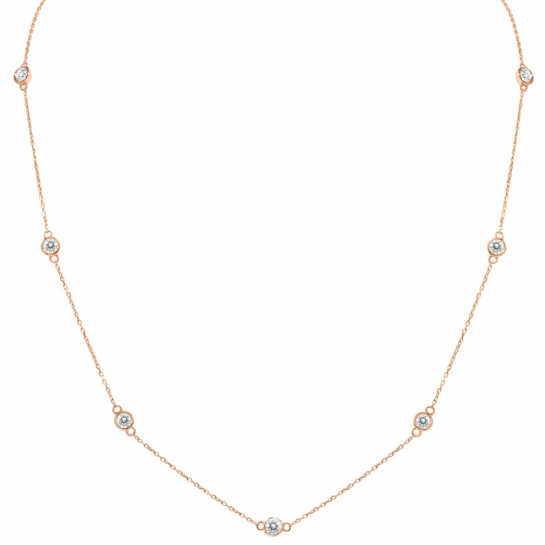 Discount π Monary 1 1/2 Carat TW Bezel Set Diamond Station Necklace in 14K Rose Gold for π© women π