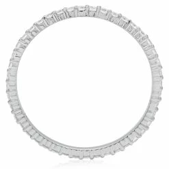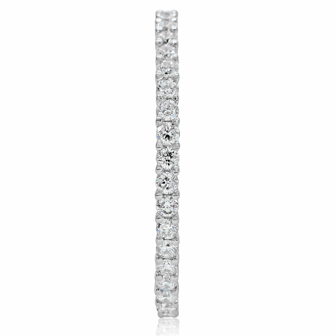 This classic eternity band features 37-48 round shape diamonds at approximately 1/2 carat total weight. Diamond color is H color, SI2 clarity. Ring is 1.5mm wide and is in 14 karat white gold.
