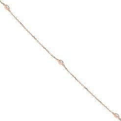 A very stylish and popular diamond station necklace featuring 10 genuine bezel set diamonds weighing 1/2 carat total weight on a 14K rose gold chain. The 0.80mm gauge cable chain creates a cool, easy wear look perfect for today’s dainty fast fashion styles. The necklace secures with a durable lobster claw clasp. The necklace measures 18 inches in length.