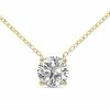 These classic stud earrings feature two moissanites in a 14 karat yellow gold push screw back setting at 1 carat total weight. Earrings come with push screw backs. Each earring measures approximately 5mm. Moissanite color is E-F and clarity is VVS1-VVS2.