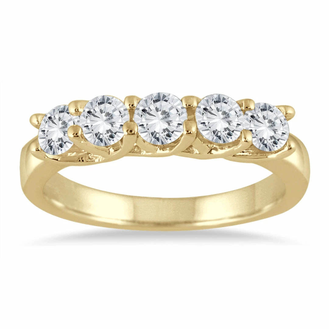 Deals π Monary 1 Carat TW Five Stone Diamond Wedding Band in 10K Yellow Gold for π© women π