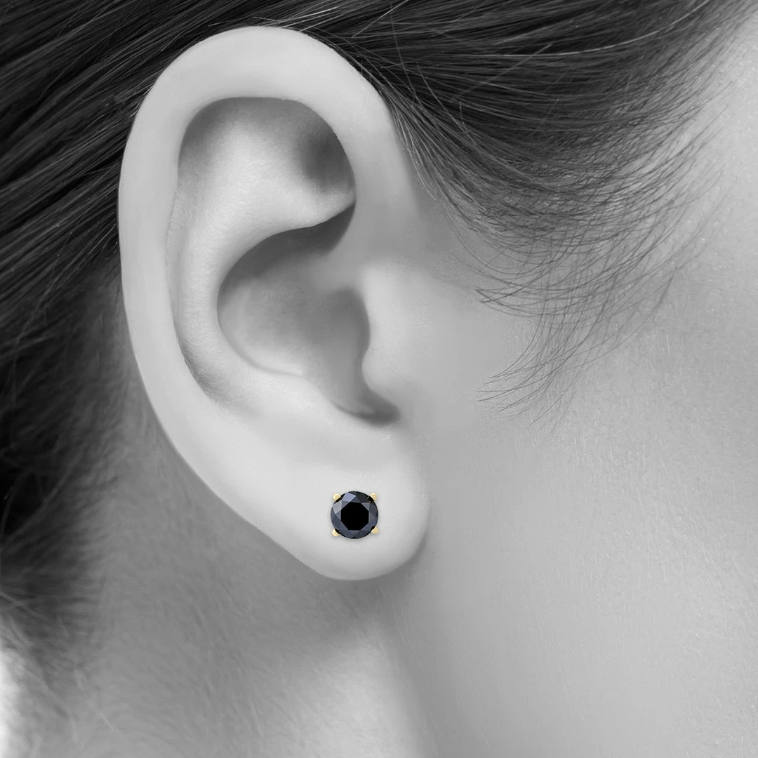 Best Pirce π₯° Monary 1 Carat TW Round Black Diamond Solitaire Stud Earrings in 10K Yellow Gold for π© women π