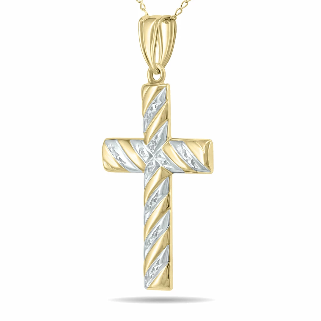 Best Pirce π₯ Monary 10K Gold Filled Etched Cross Pendant With White Rhodium Polish Accents for π© women β