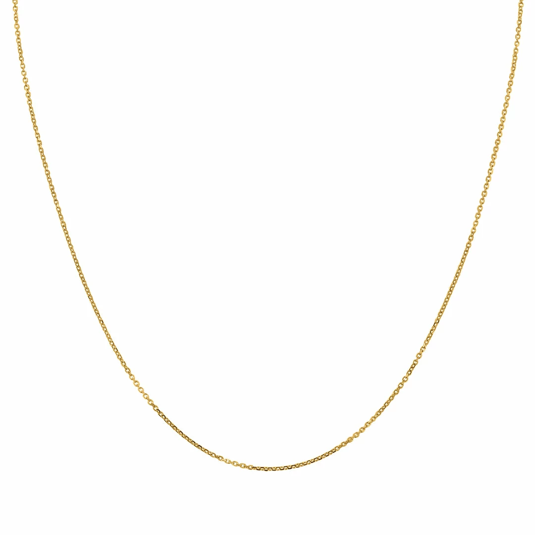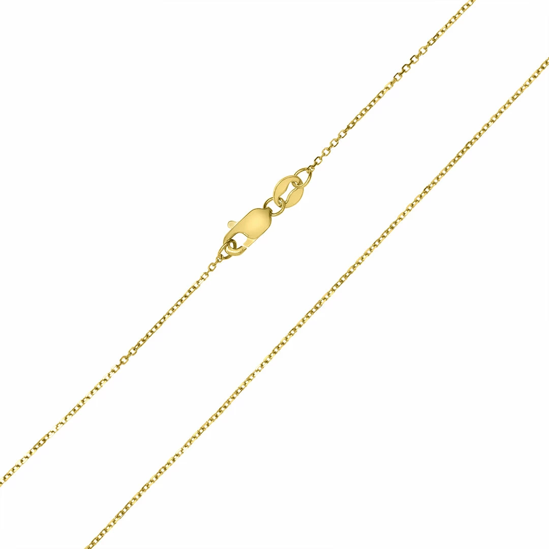 A beautifully constructed 0.8MM shiny cable chain with lobster clasp in 10K yellow gold. The chain secures with a durable lobster clasp. An excellent quality 10K yellow gold chain perfect if worn alone or with a pendant. The chain measures 18 inches in length.