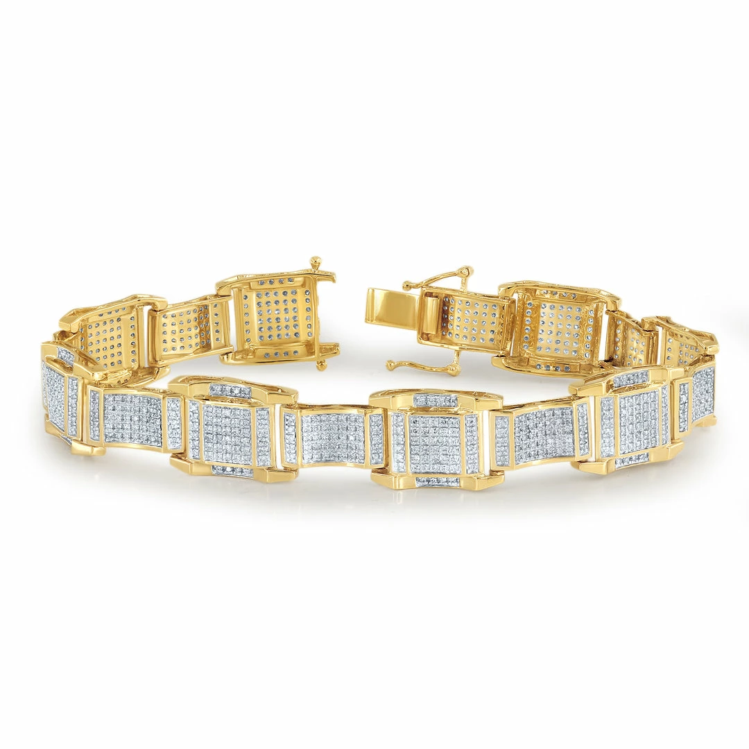 This 10K yellow gold bracelet is a stunning piece of jewelry that will look great with any outfit. It has a total of 3.05 carats of shiny GH-SI diamonds in a pave setting. This bracelet has a safety lock closure.
