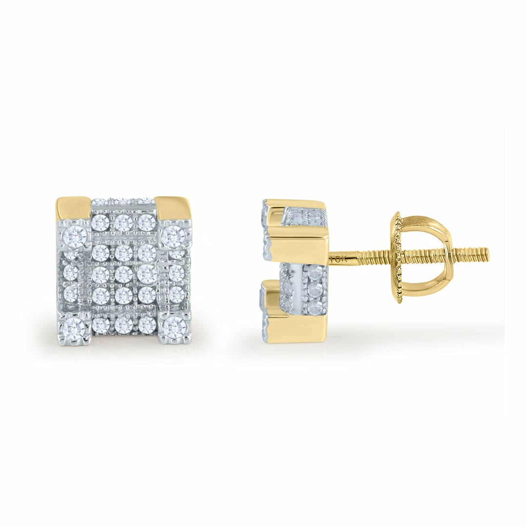 This beautiful pair of square shape earrings features a total of 0.33 carats of GH-SI diamonds. The diamonds are prong-set in 10K two-tone yellow white gold. The earrings are completed with a screw on the backends for added protection.