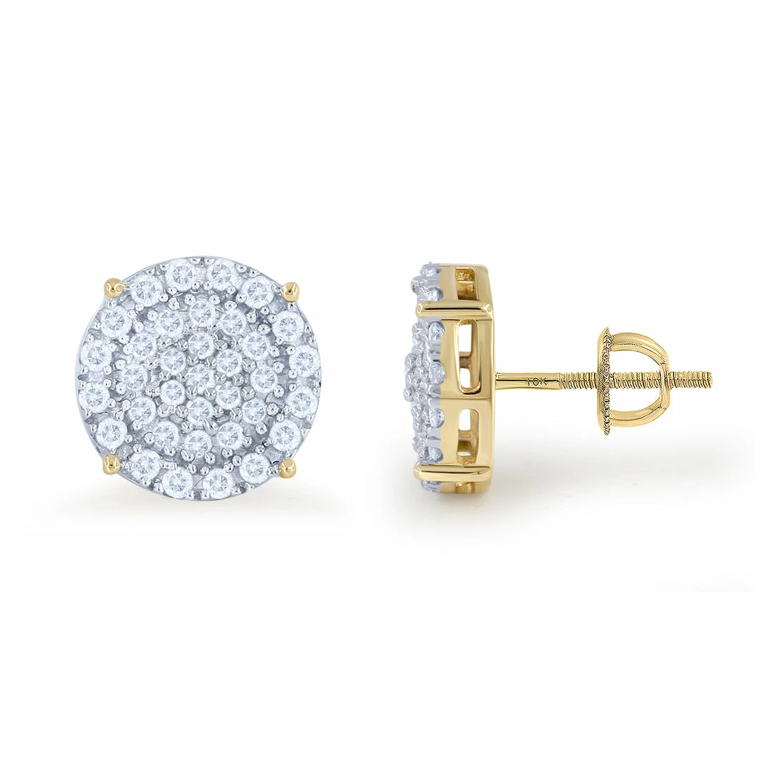 This beautiful pair of diamond circle shape earrings features a total of 0.46 carats of GH-SI diamonds. The diamonds are prong-set in 10K two-tone yellow white gold. The earrings are completed with a screw on the backends for added protection.