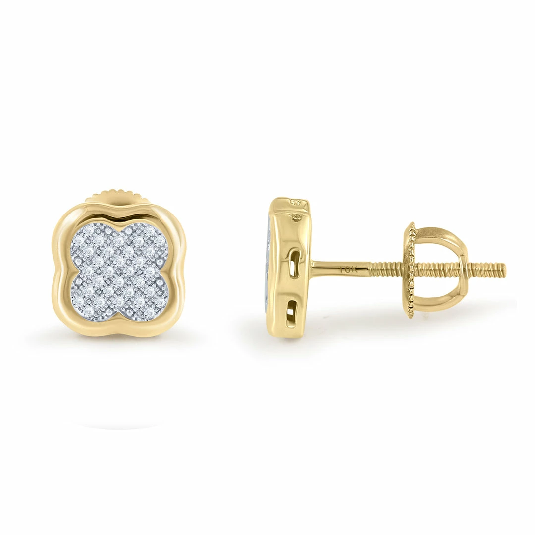 This beautiful pair of square shape earrings features a total of 0.15 carats of GH-SI diamonds. The diamonds are prong-set in 10K two-tone yellow white gold. The earrings are completed with a screw on the backends for added protection.