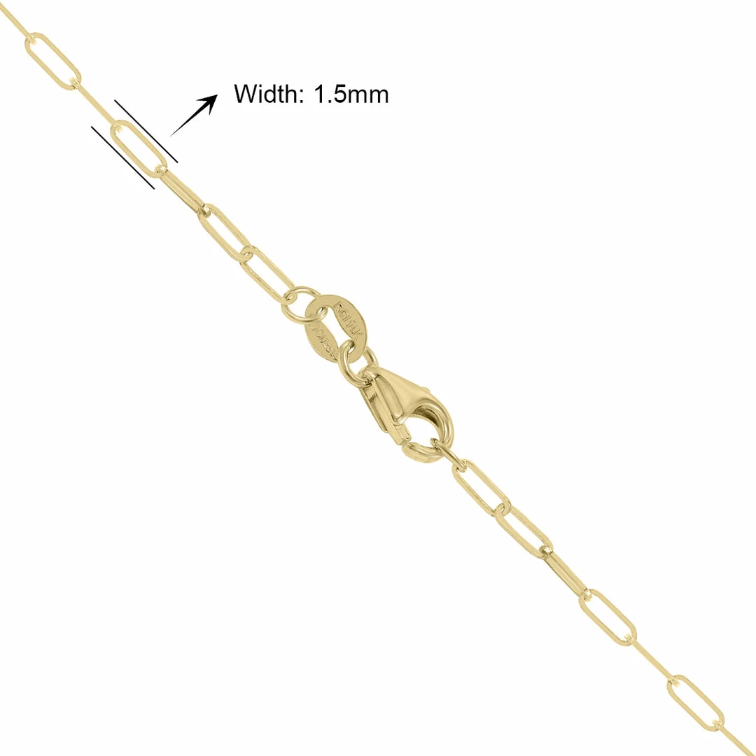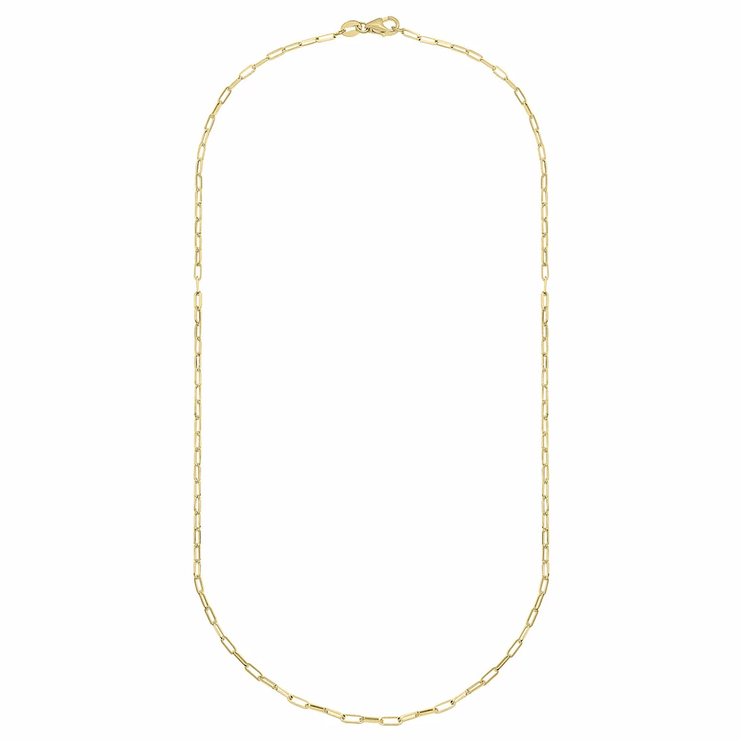 This beautiful and dainty 16-inch 14K yellow gold paperclip necklace is the perfect accessory for any occasion. The light, fresh, and timeless piece will pair effortlessly with any look and is perfect for layering. This necklace also features a durable lobster clasp that will provide security during your busiest days. If you are looking for a necklace that is perfect for a night out on the town or business chich, this is the accessory for you!
