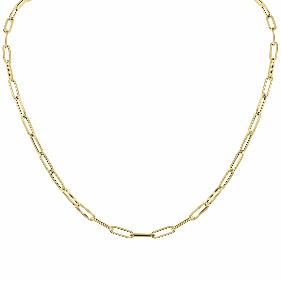 This long and beautiful 20-inch 14K yellow gold paperclip necklace with a lobster clasp is an artfully crafted piece. Whether it is stacked with other shorter necklaces or worn alone for a sophisticated look, this necklace is sure to impress anyone. The uniqueness of this trendy piece will accentuate your features and elevate any look you pair it with.