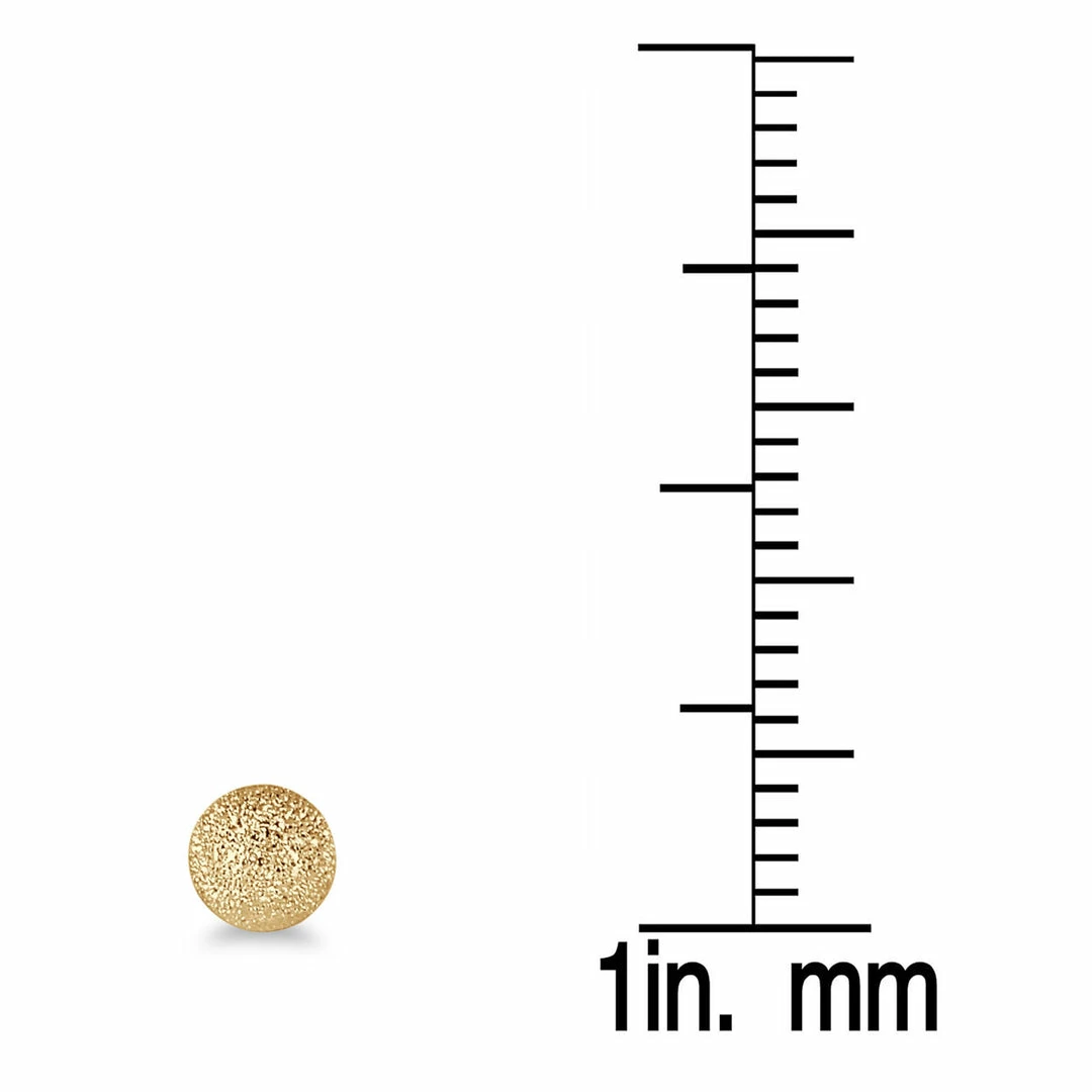 A pair of beautiful laser cut satin finish ball stud earrings crafted in 14K yellow gold. The balls measure 4mm in diameter each and secure with push back posts also crafted in 14K yellow gold. A great pair of everyday wear ball earrings with sparkle and style.