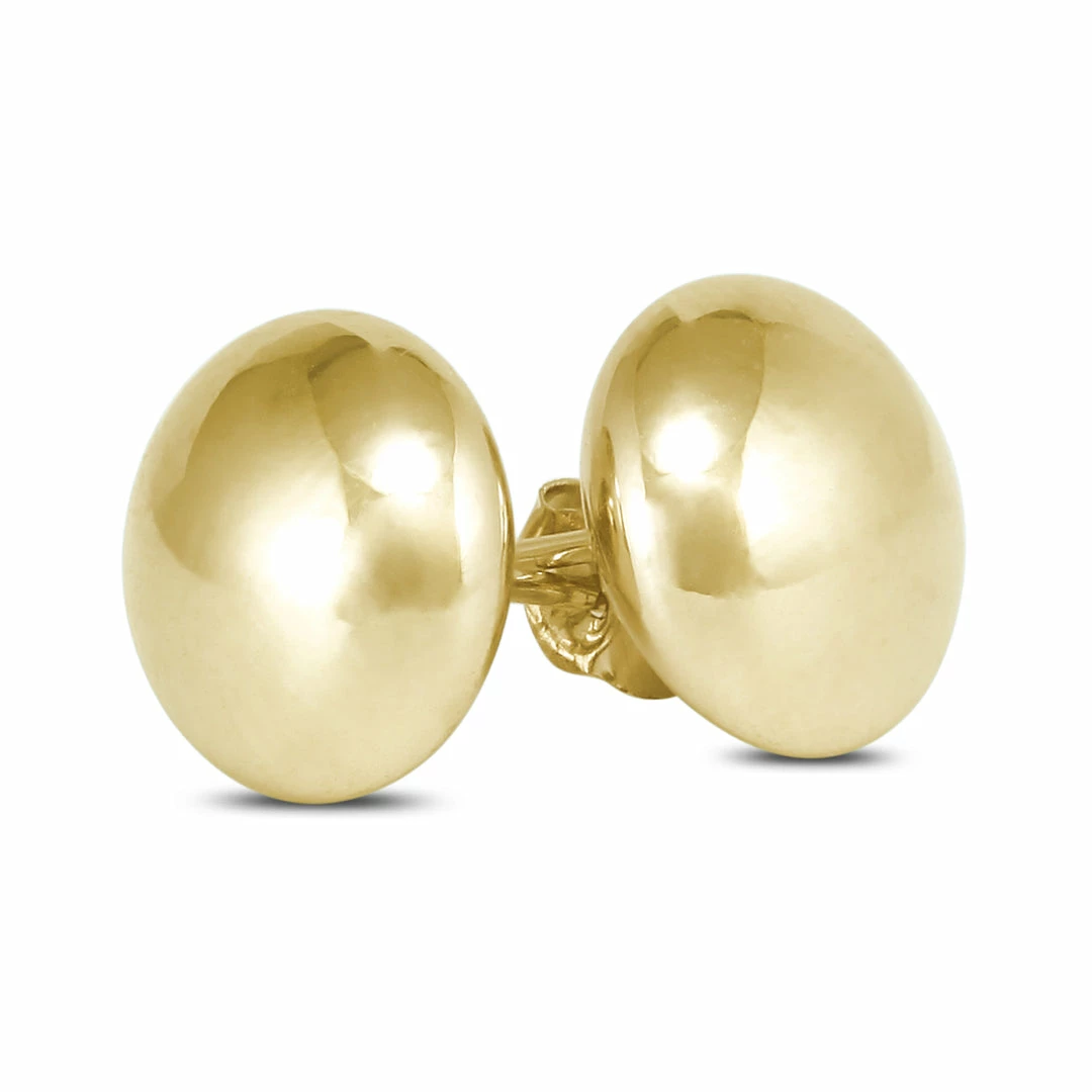 A beautiful pair of 8mm button earrings crafted in 14K yellow gold. Earrings secure with 14K yellow gold butterfly locks on push back posts.