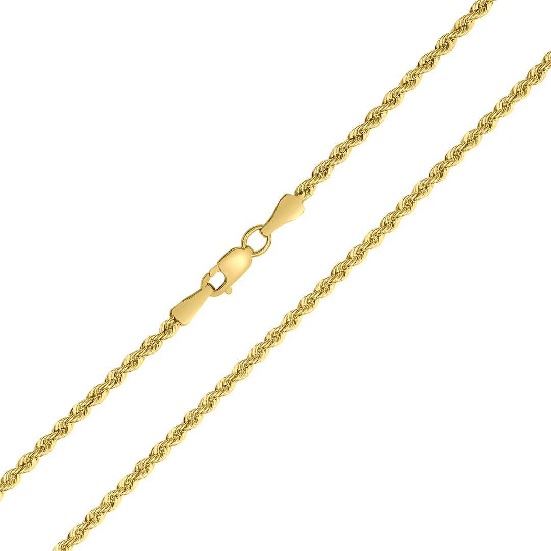 A beautiful 14K yellow gold filled shiny 2.1mm rope chain. The chain secures with a durable lobster clasp. The chain measures 18 inches in length. Gold filled jewelry consists of a layer of gold bonded to the underlying base metal. Unlike gold plating, gold filled jewelry is crafted with gold that constitutes at least 5% of the total item weight and will not fade or tarnish like plated jewelry often can. It can withstand heat and water over time.