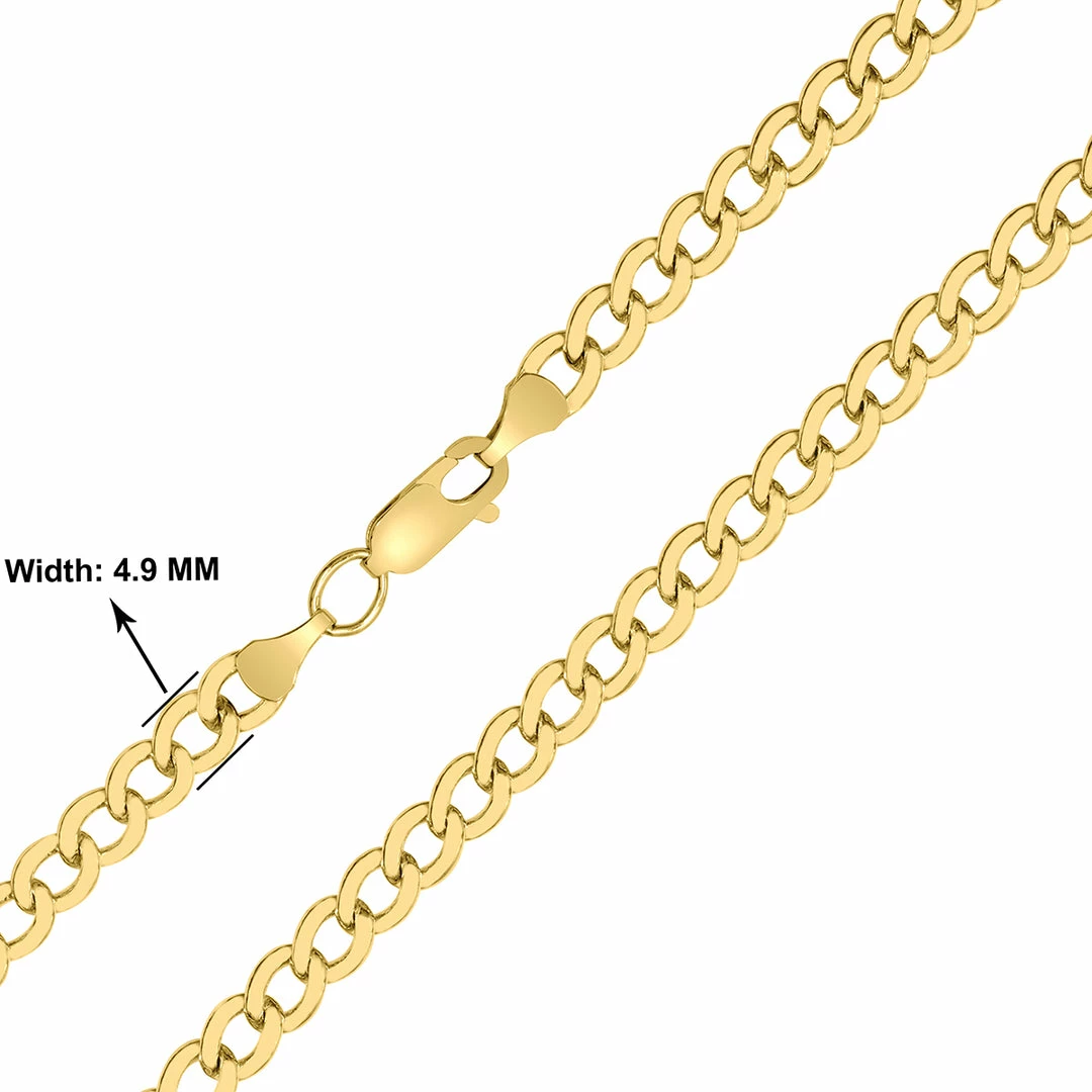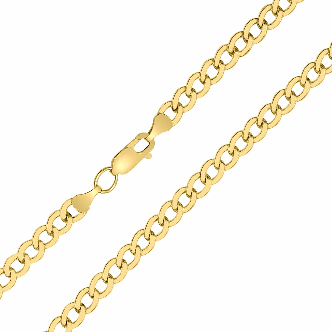 A beautifully crafted 14K yellow gold filled 4.9MM curb link chain. The chain secures with a durable lobster clasp. The chain measures 18 inches in length. Gold filled jewelry consists of a layer of gold bonded to the underlying base metal. Unlike gold plating, gold filled jewelry is crafted with gold that constitutes at least 5% of the total item weight and will not fade or tarnish like plated jewelry often can. It can withstand heat and water over time.