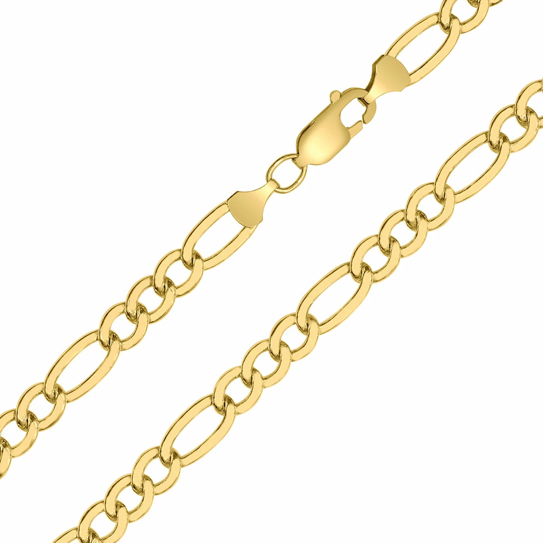 A beautifully crafted 14K yellow gold filled 6mm Figaro chain. The chain secures with a durable lobster clasp. The chain measures 18 inches. Gold filled jewelry consists of a layer of gold bonded to the underlying base metal. Unlike gold plating, gold filled jewelry is crafted with gold that constitutes at least 5% of the total item weight and will not fade or tarnish like plated jewelry often can. It can withstand heat and water over time.