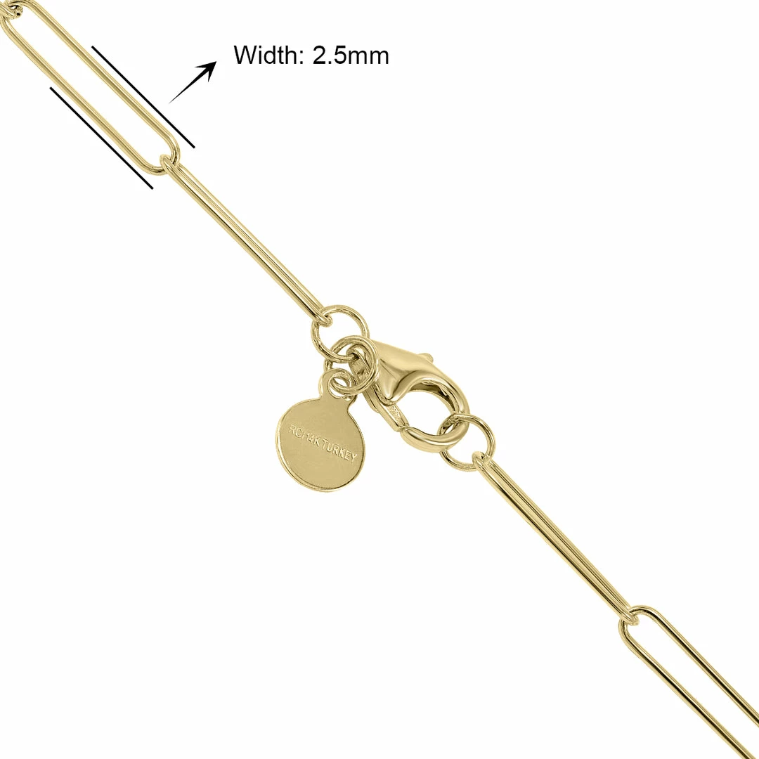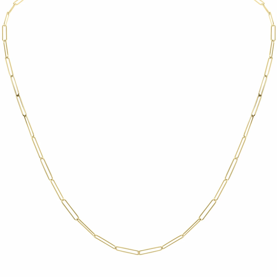 This dainty and sophisticated 24-inch 14K yellow gold paperclip necklace is a masterfully crafted piece. The necklace features a durable lobster clasp which will keep the accessory secure during your busiest days. Wear it with other pieces or on its own. The possibilities are endless with this versatile and amazing necklace.