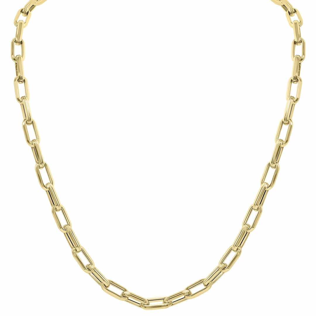 New π Monary 14K Yellow Gold Men’s Paperclip Necklace With a Lobster Clasp – 24 Inch π