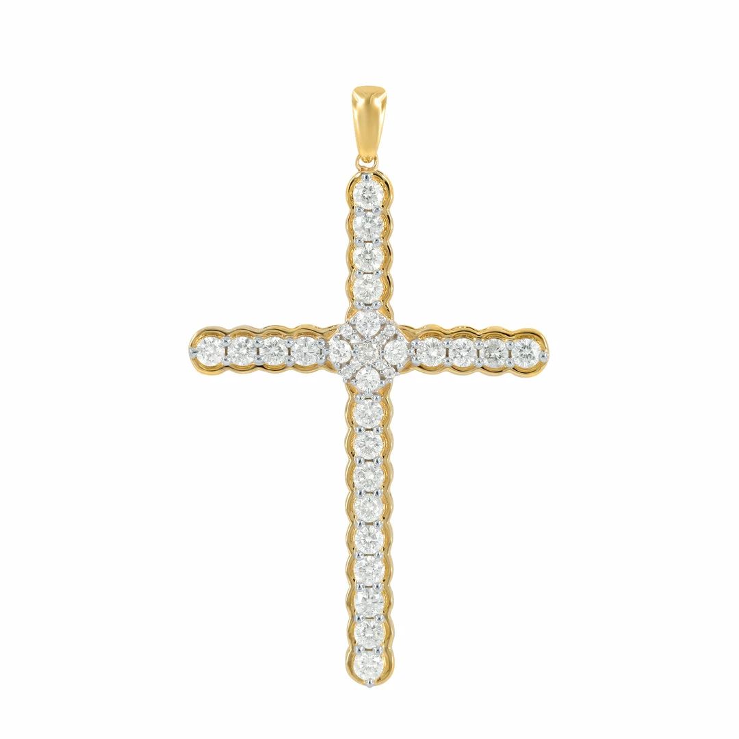 This delicate 14K yellow gold pendant has been finely crafted to be the ideal accessory for everyday wear. The pendant features a hamza symbol set with 0.98 carats of GH-SI diamonds that create a captivating sparkling effect. This pendant is both stylish and eye-catching, making it a charming gift for someone special.