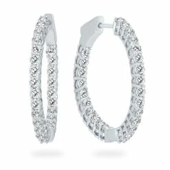 Cheapest π₯° Monary 2 Carat TW Round Diamond Hoop Earrings with Push Down Button Lock in 14K White Gold for π© women β