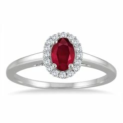 Outlet π Monary 6x4MM Oval Shape Ruby and Diamond Halo Ring in 10K White Gold for π© women π