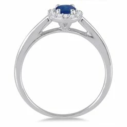Promo β€οΈ Monary 6x4MM Oval Shape Sapphire and Diamond Halo Ring in 10K White Gold for π© women β€οΈ