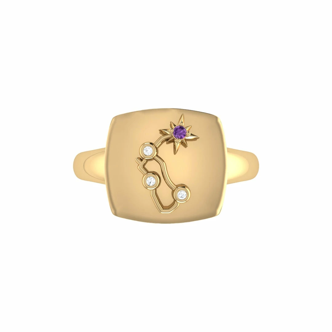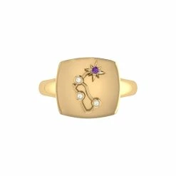 Best deal π Monary Aquarius Water-Bearer Amethyst & Diamond Constellation Signet Ring in 14K Yellow Gold on Sterling Silver for π© women π₯°