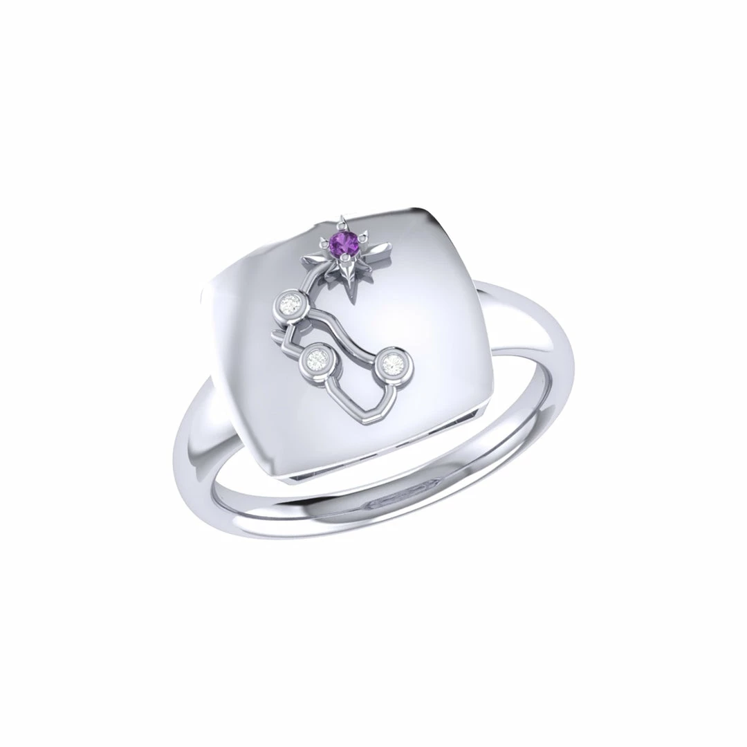 Top 10 π₯° Monary Aquarius Water-Bearer Amethyst & Diamond Constellation Signet Ring in Sterling Silver for π© women β€οΈ