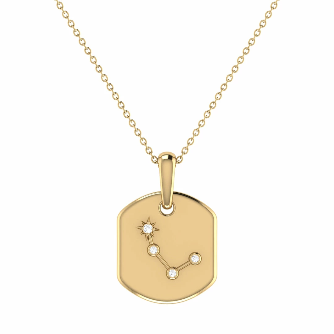 Feel committed and empowered with our Aries Ram Constellation Tag Pendant Necklace. Born between March 21st and April 19th, Aries are passionate, independent trailblazers. Their birthstone is Diamond. Crafted in 925 Sterling Silver, this pendant necklace features 0.05 carats of genuine, natural diamonds in collet prong and bezel settings. Plated in 14K Yellow Gold Vermeil, this necklace has a long-lasting shelf-life. This tag comes with a 18″ cable chain, with jump rings at 16″ and 17″ so you can adjust the length as needed. This tag is 16.1 mm wide and 23.9 mm long. This necklace is beautifully presented with the inspirational poem ‘Cosmic’ written by the founder & CEO.