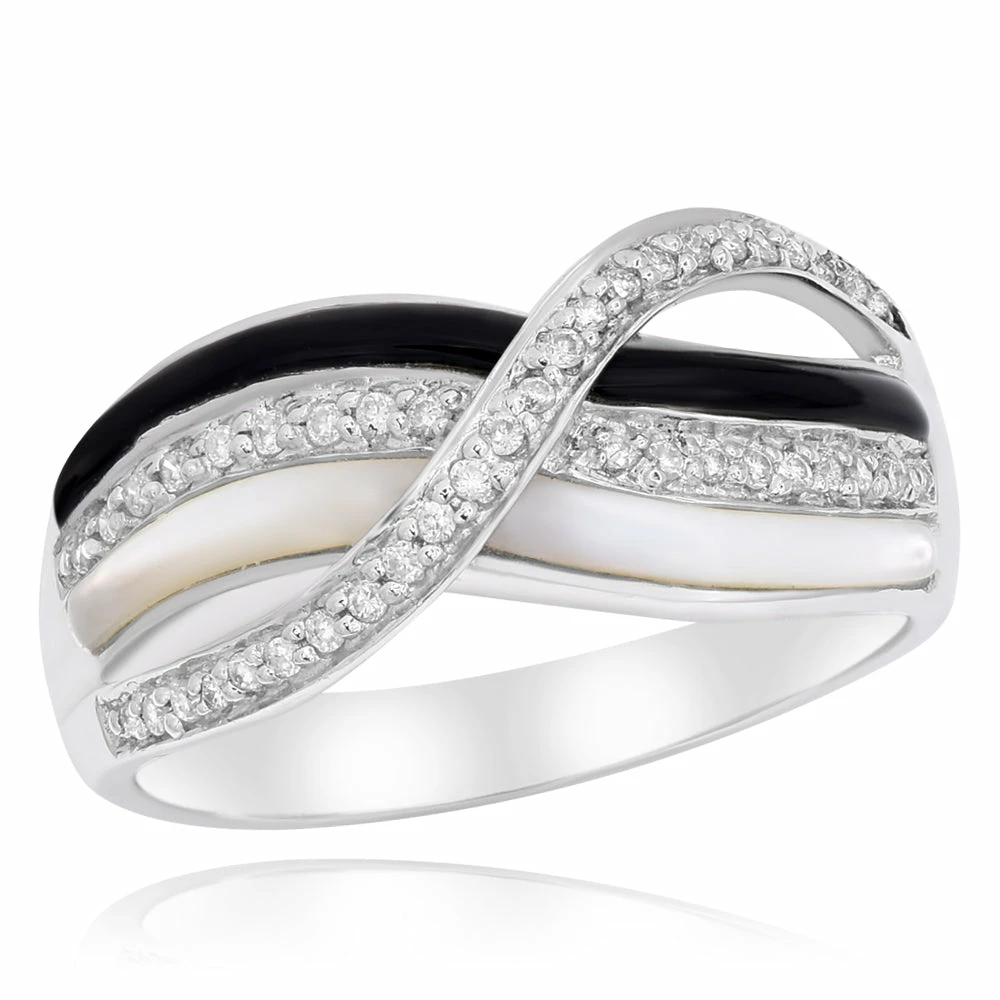 Black Enamel & White Diamond Fashion Ring – Set in 14K White Gold – Prong Set 0.16 ct /S6111D