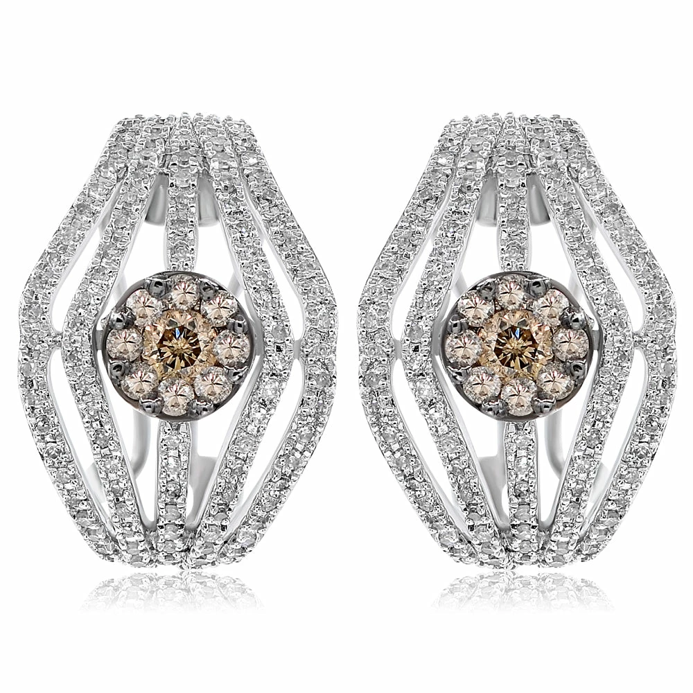 Wholesale π Monary Brown & White Diamond Huggies Earrings Set in 14K White Gold for π© women π