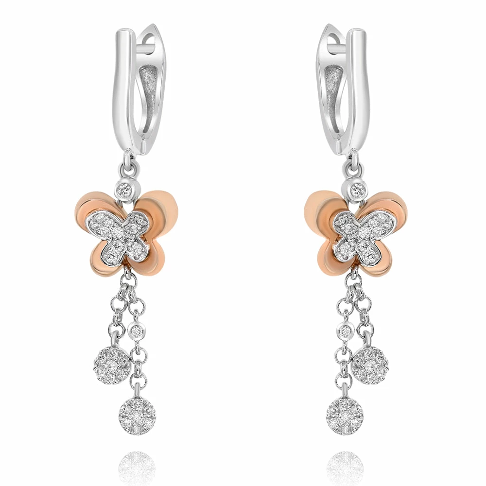 Coupon π Monary Butterfly White Diamond Dangle Earrings Set in 18K Two Tone Gold for π© women β