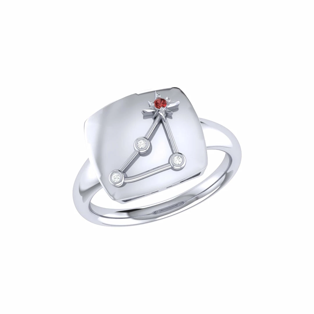 Best Sale π₯ Monary Capricorn Goat Garnet & Diamond Constellation Signet Ring in Sterling Silver for π© women β¨