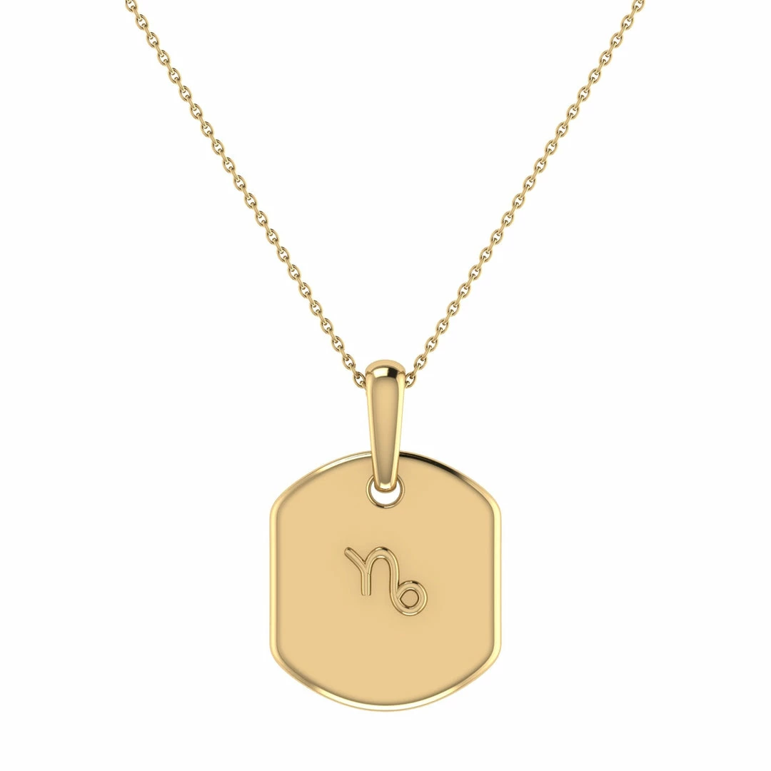 Keep your mind focused on your goals, both personal and professional, with our Capricorn Goat Constellation Tag Pendant Necklace. Born between December 22nd and January 19th, Capricorns don’t mind the hustle and are the ultimate worker bees. Their birthstone is Garnet. Crafted in 925 Sterling Silver, this pendant necklace features a single garnet gemstone (0.02 Carats) along with 0.03 carats of genuine, natural diamonds in collet prong and bezel settings. Plated in 14K Yellow Gold Vermeil, this necklace has a long-lasting shelf-life. This tag comes with a 18″ cable chain, with jump rings at 16″ and 17″ so you can adjust the length as needed. This tag is 16.1 mm wide and 23.9 mm long. This necklace is beautifully presented with the inspirational poem ‘Cosmic’ written by the founder & CEO.