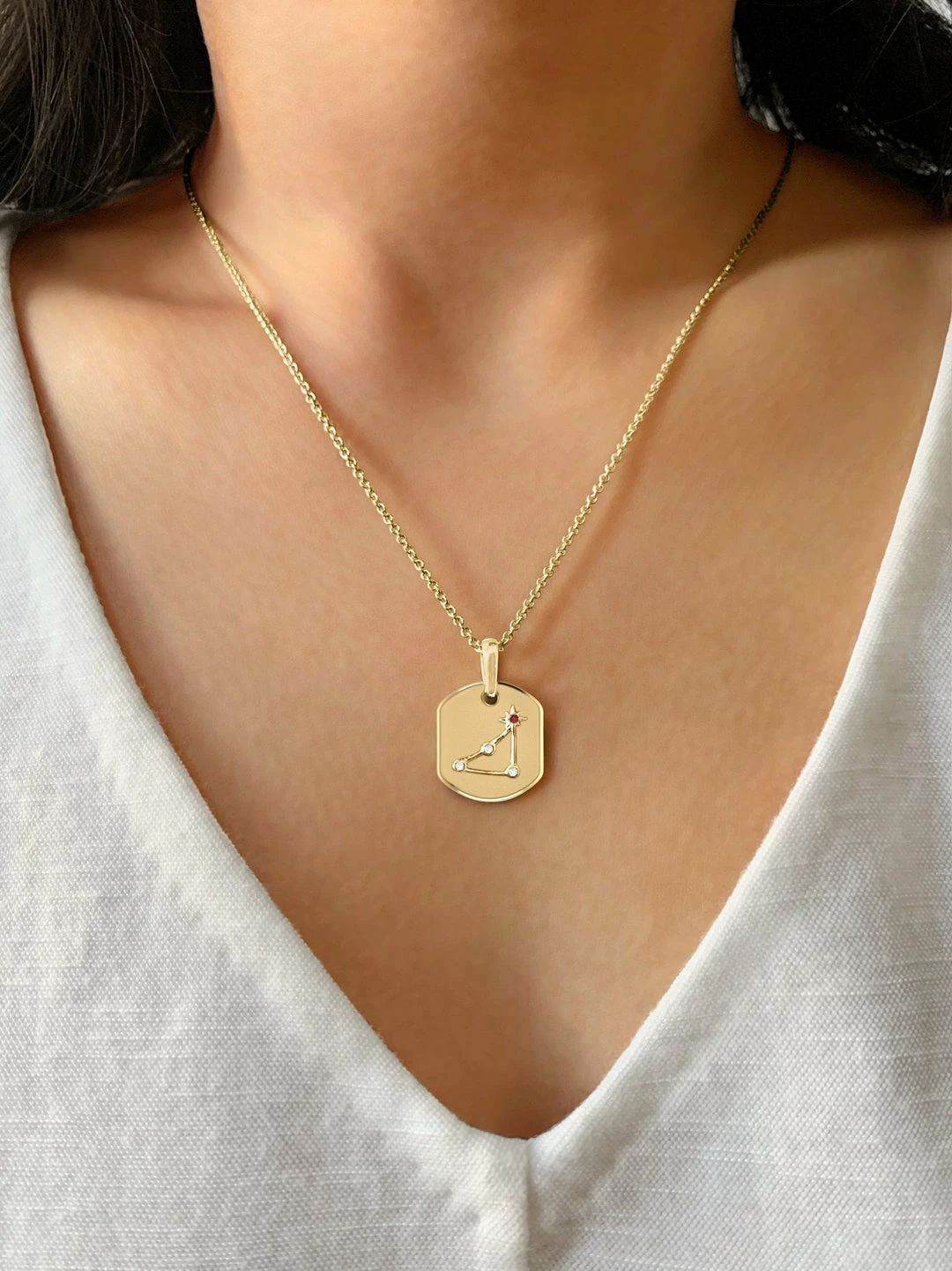 Brand new β¨ Monary Capricorn Goat Garnet & Diamond Constellation Tag Pendant Necklace in 14K Yellow Gold Vermeil on Sterling Silver for π© women π₯°