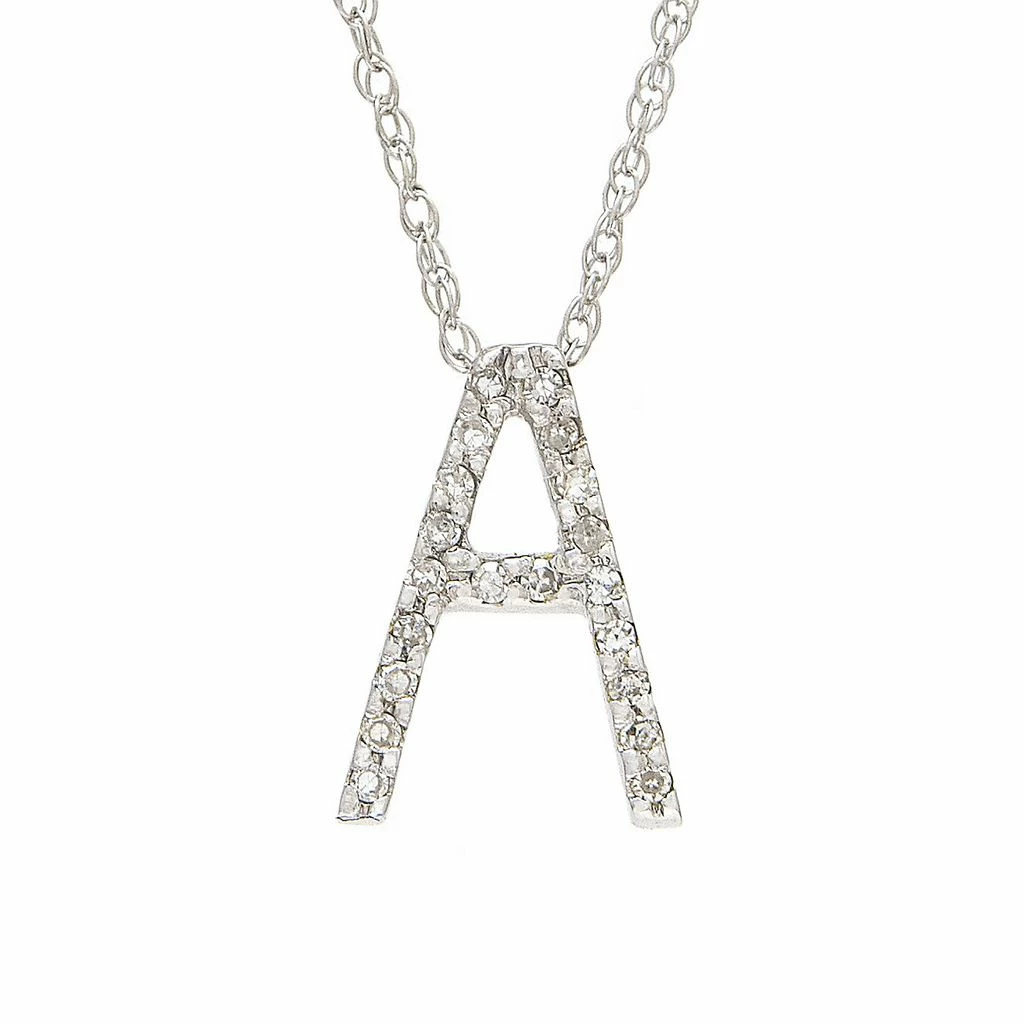 White Gold Initial Single Pave Diamond Pendant (14kwg Initial Pendant) (Diamond “a” (Wg/With Chain)) D – 0.08 (11.15mm H),Initial A,Letter A