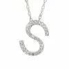 White Gold Initial Single Pave Diamond Pendant (14kwg Initial Pendant) (Diamond “b” (Wg/With Chain)) D – 0.12 (11.15mm H),Initial B,Letter B