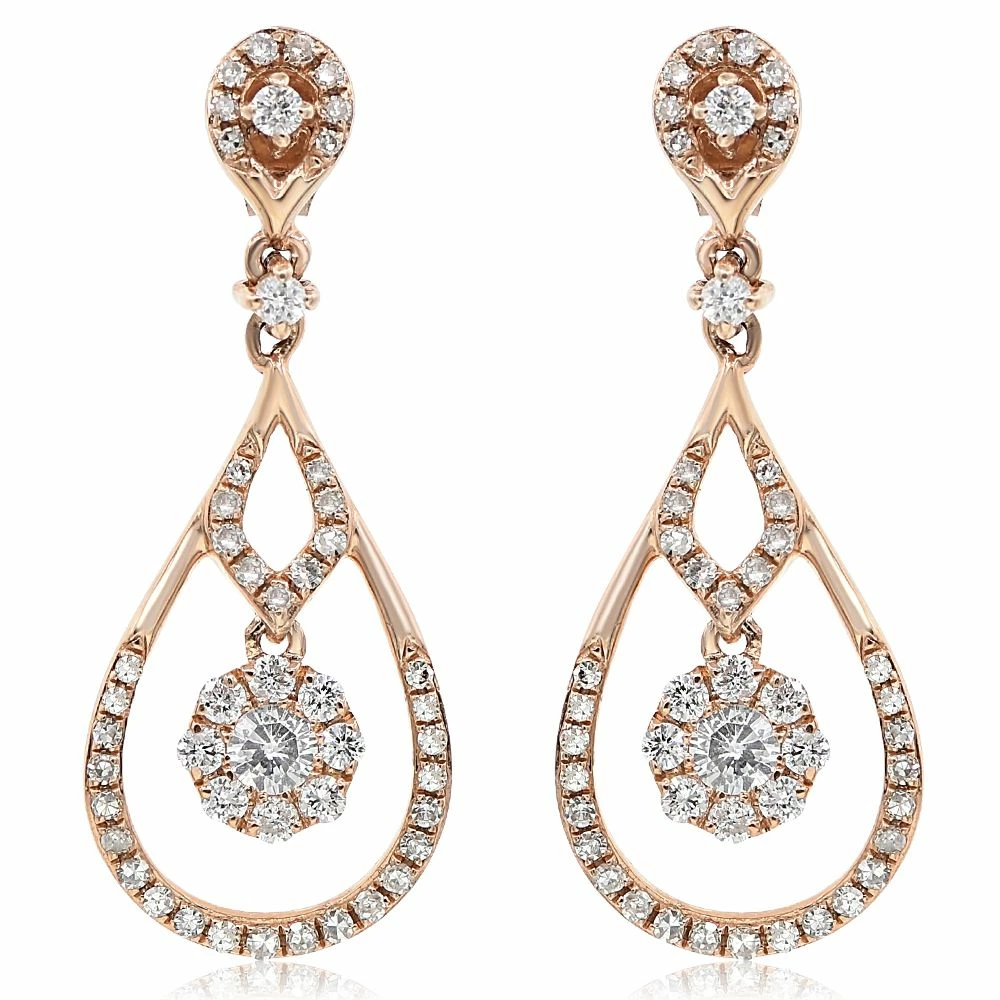 G-H Color Diamond Dangle Earrings Set in 14K Rose Gold – Prong Set 0.86 ct