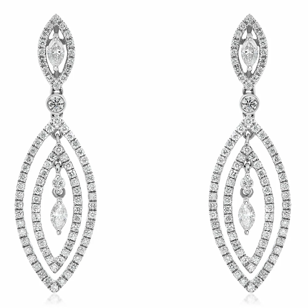 G-H Color Diamond Dangle Earrings Set in 14K White Gold – Prong Set 1.35 ct /EB752