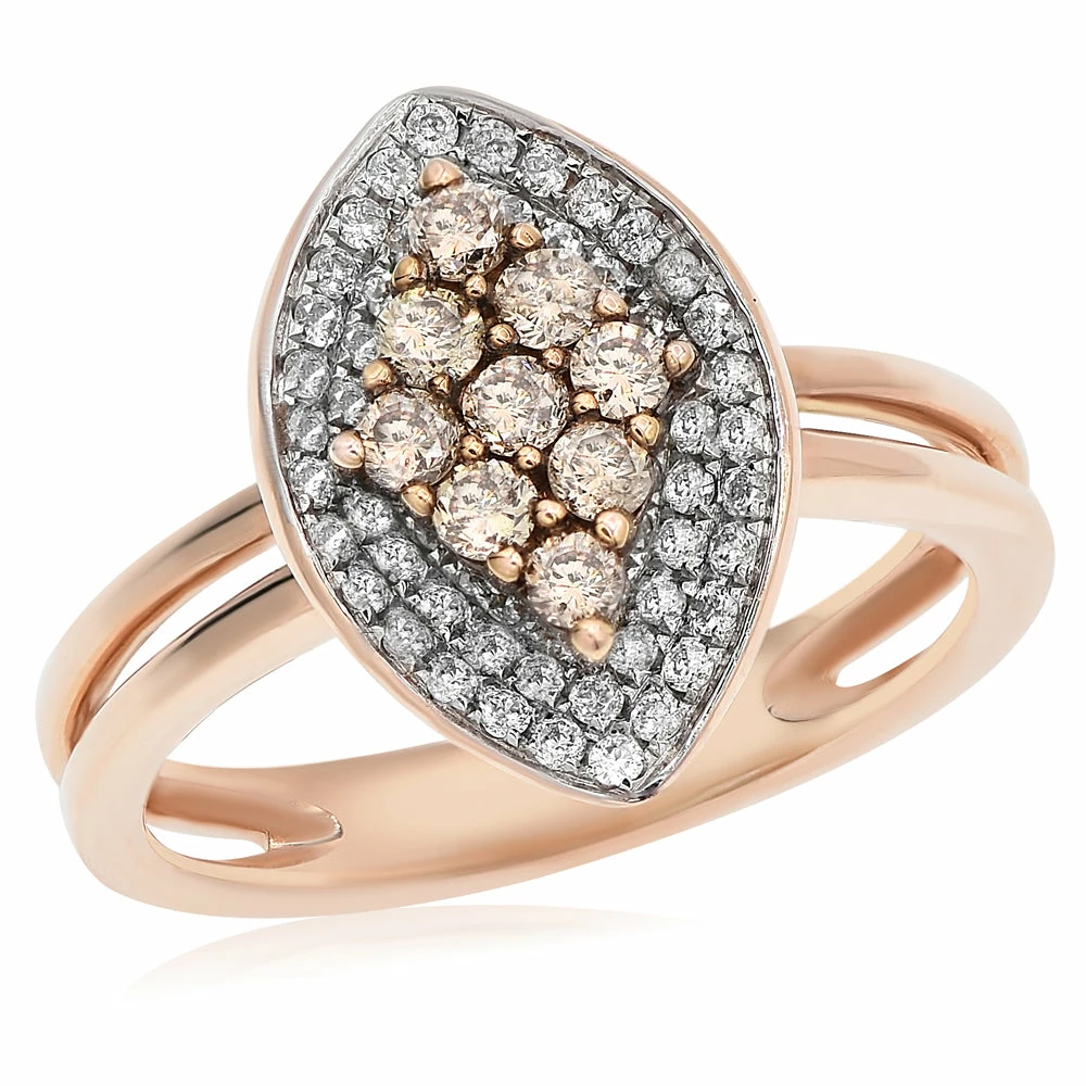 Diamond Fashion Ring – Set in 18K Rose Gold Prong Set – 0.74 ct White & Brown /RD573A