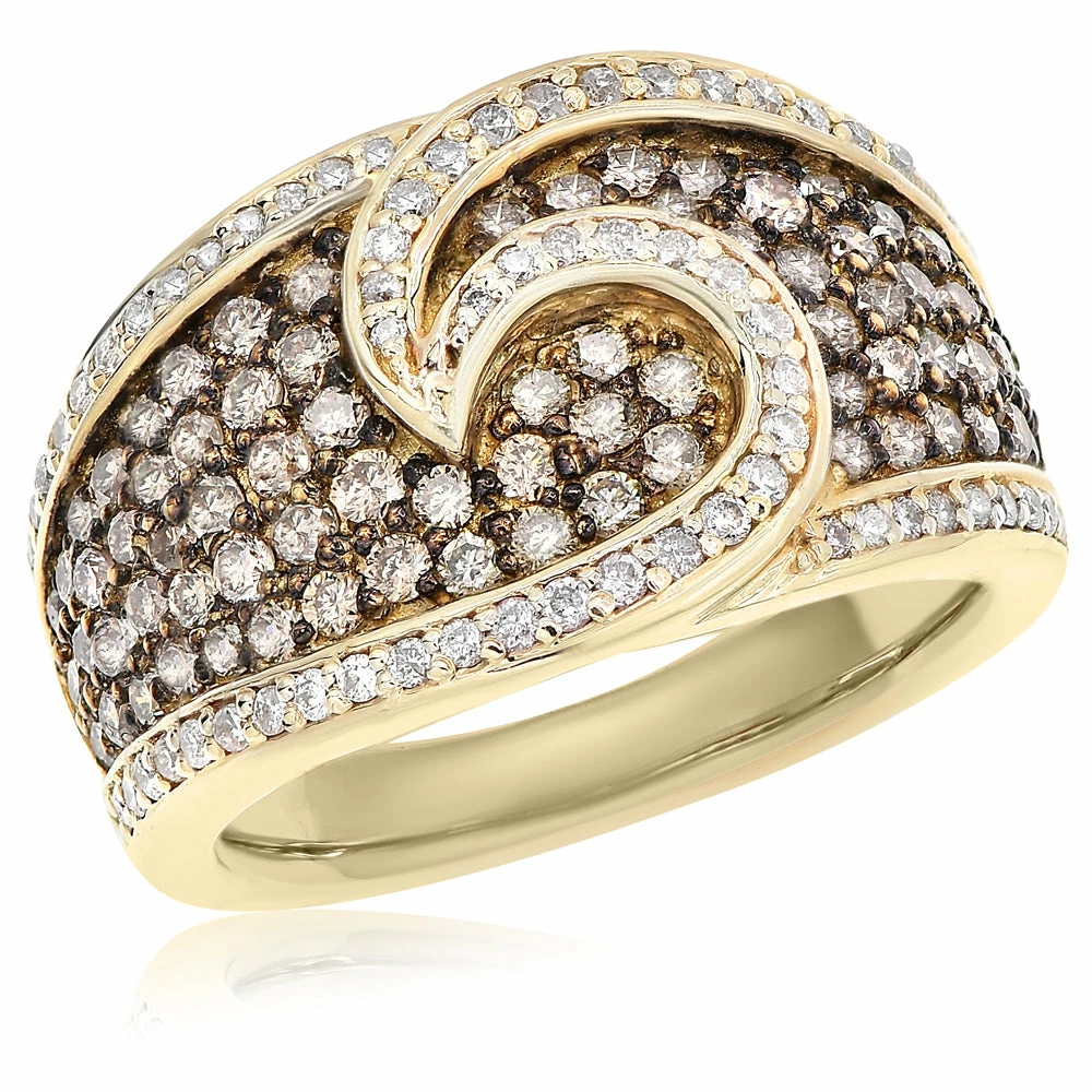 Diamond Fashion Ring – Set in 14K Yellow Gold Prong Set – 1.45 ct White & Brown /RC616AY