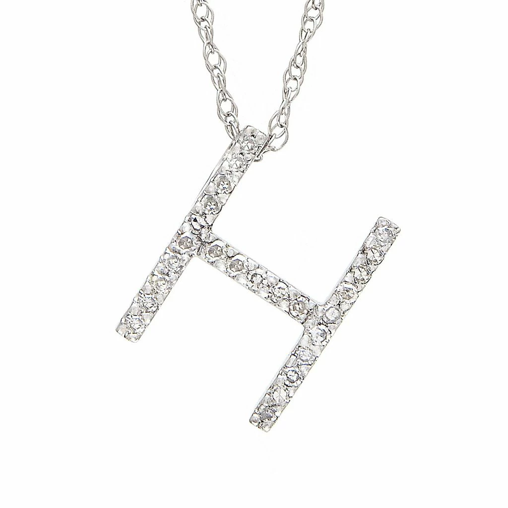 White Gold Initial Single Pave Diamond Pendant (14kwg Initial Pendant) (Diamond “h” (Wg/With Chain)) D – 0.10 (11.15mm H),Initial H,Letter H