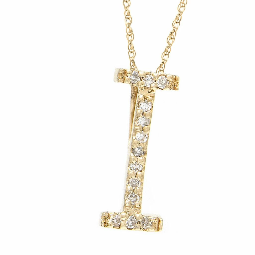 Yellow Gold Initial Single Micro Pave Diamond Necklace (14kyg Initial Necklace) (Diamond “i” (Yg/With Chain) Initial) D – 0.08 (11 Mm),Promo,Initial I,Letter I