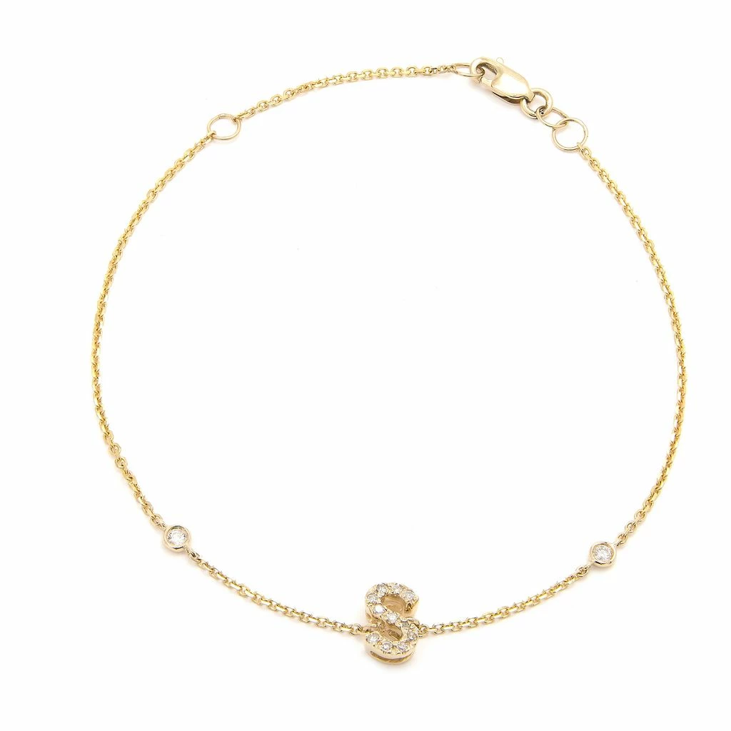 New β Monary Diamond Initial Fashion Bracelet “S” (14k) (6+1″) for π© women π―