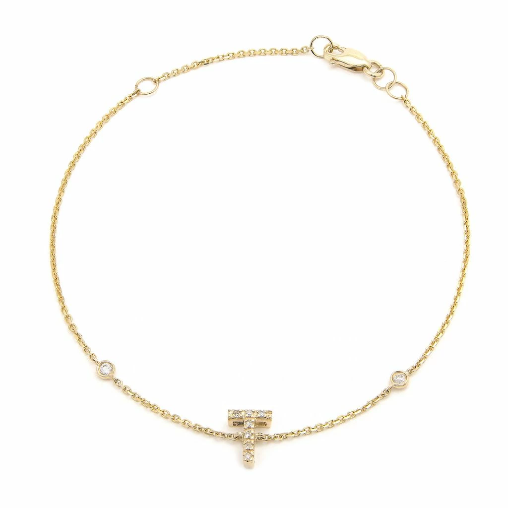 Yellow Gold Letter Single Micro Pave Diamond Bracelet (14kyg Letter Bracelet) (Diamond Initial Fashion Bracelet “t” (14k) (6+1″)) D – 0.08 (7mm Charm),Letter