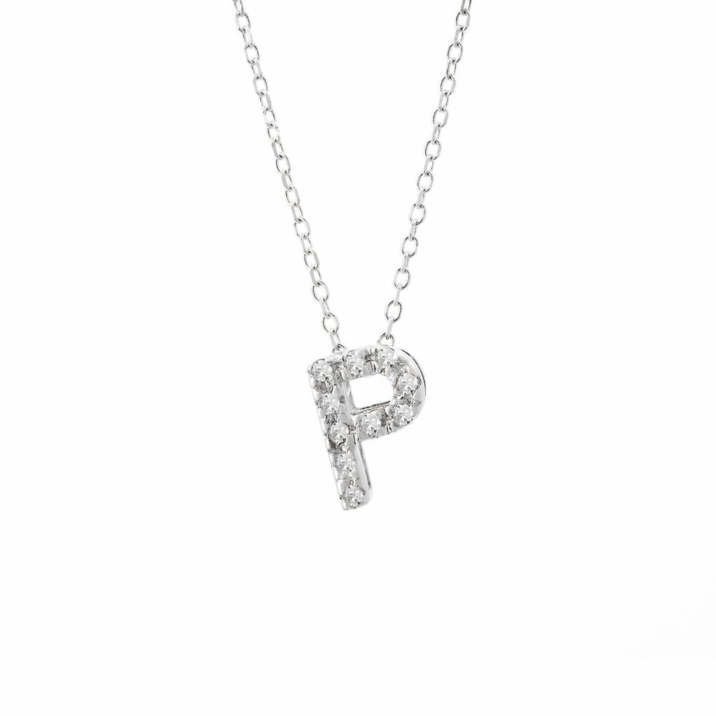 White Gold Initial Single Micro Pave Diamond Necklace (14kwg Initial Necklace) (Diamond IntIIal Necklace (14kw)) D – 0.03 (7mm),(Promo),Initial P,Letter P