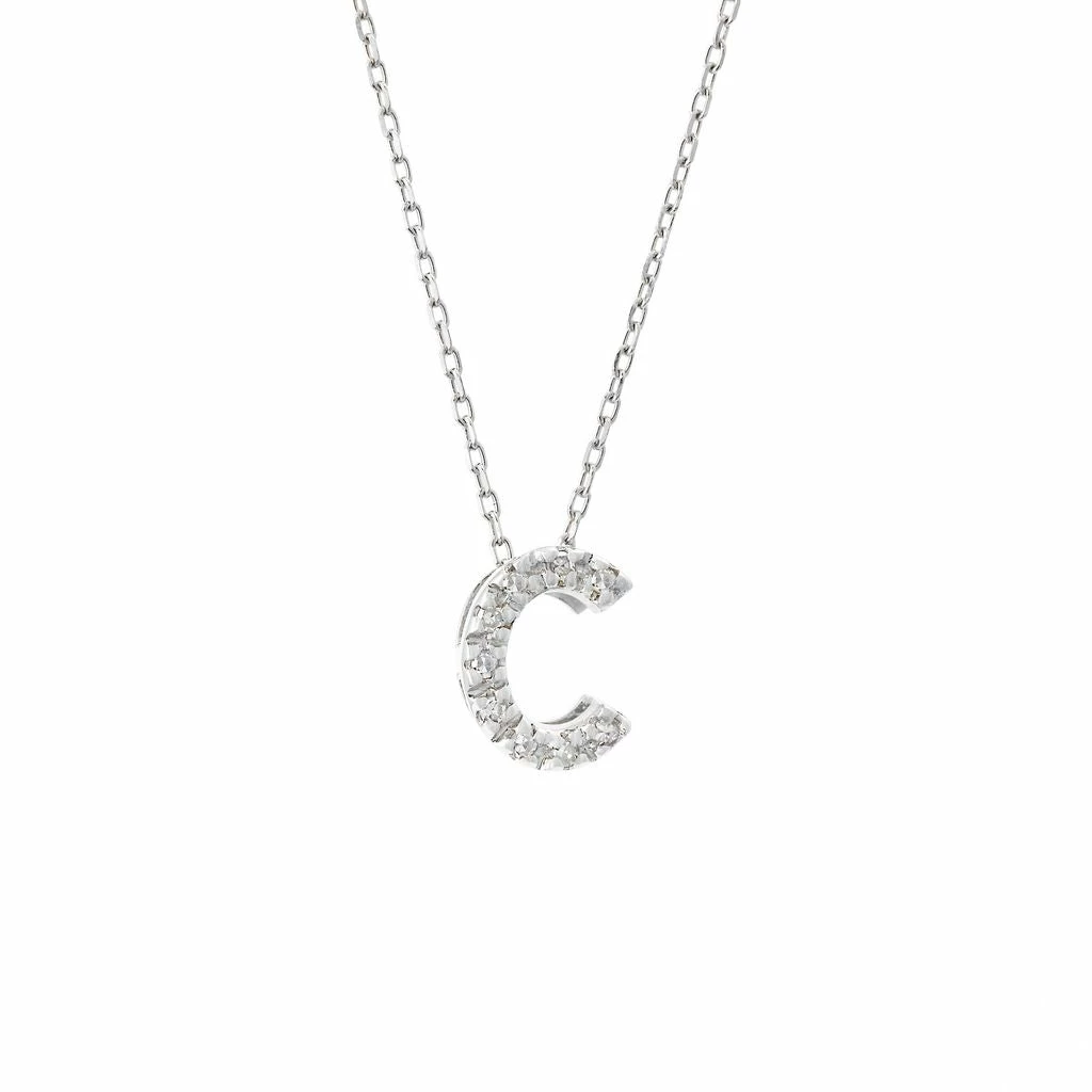 White Gold Initial Single Micro Pave Diamond Necklace (14kwg Initial Necklace) (Diamond IntIIal Necklace (14kw)) D – 0.04 (7mm),(Promo),Initial C,Letter C