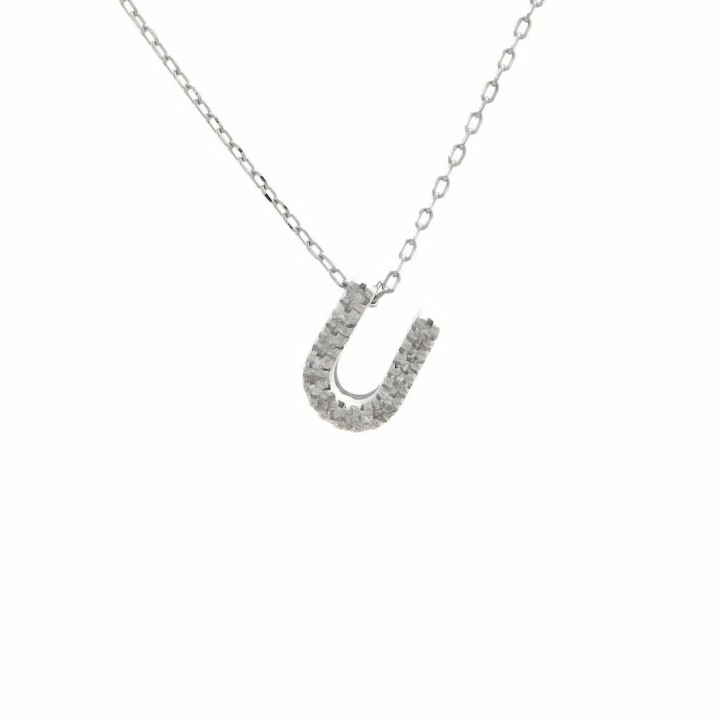 White Gold Initial Single Micro Pave Diamond Necklace (14kwg Initial Necklace) (Diamond IntIIal Necklace (14kw)) D – 0.04 (7mm),(Promo),Initial U,Letter U