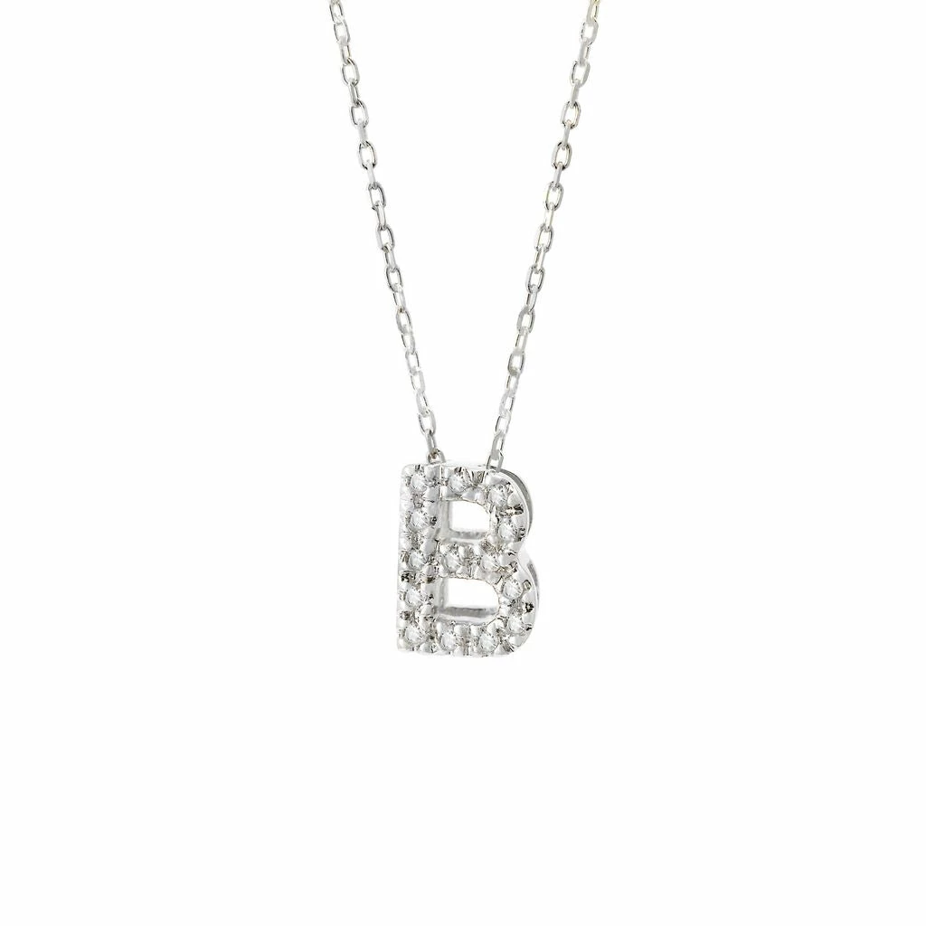 White Gold Initial Single Micro Pave Diamond Necklace (14kwg Initial Necklace) (Diamond IntIIal Necklace (14kw)) D – 0.05 (7mm),(Promo),Initial B,Letter B