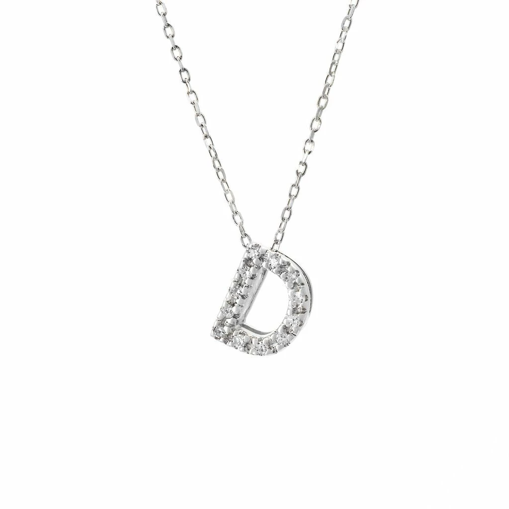 White Gold Initial Single Micro Pave Diamond Necklace (14kwg Initial Necklace) (Diamond IntIIal Necklace (14kw)) D – 0.05 (7mm),(Promo),Initial D,Letter D