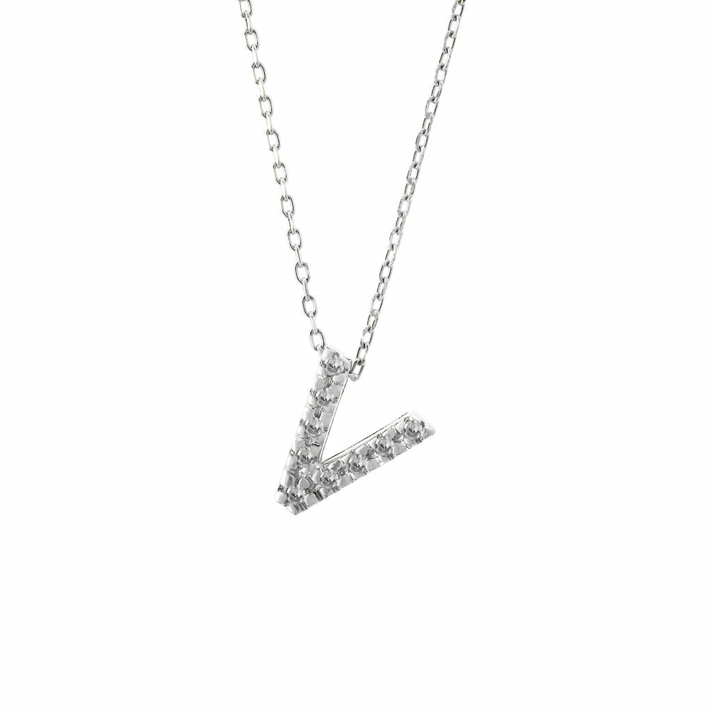 White Gold Initial Single Micro Pave Diamond Necklace (14kwg Initial Necklace) (Diamond IntIIal Necklace (14kw)) D – 0.03 (7mm),(Promo),Initial V,Letter V
